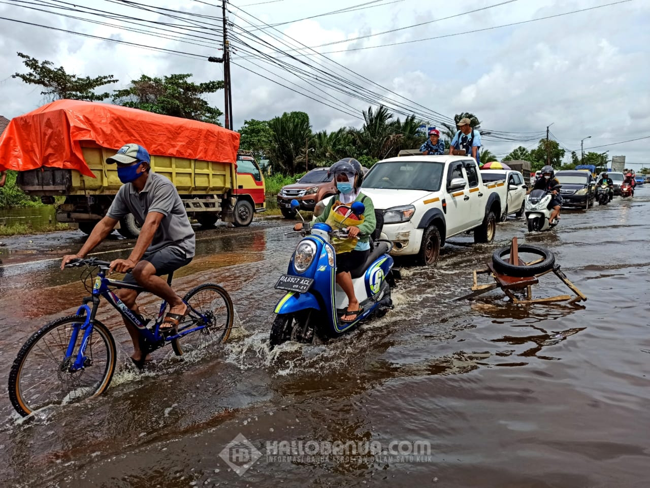Ditambahkan Randi, sejak banjir meluap dan menggenangi jalan Trans Kalimantan di kawasan Handil Bakti ini, banyak jalan yang aspalnya terkelupas hingga menimbulkan lubang yang lumayan besar.